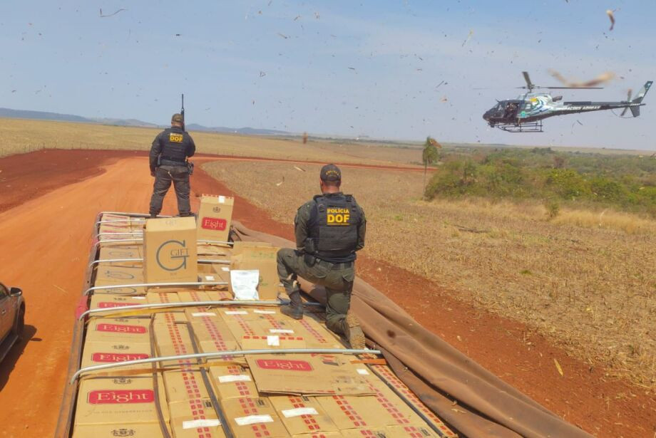 O Departamento de Operações de Fronteira (DOF) realizou, nesta quinta-feira (18), uma das maiores apreensões de contrabando do ano em Mato Grosso do Sul. Durante patrulhamento na MS-164, em Maracaju, os policiais interceptaram uma carreta Scania carregada com mais de 30 mil pacotes de cigarros e 25 caixas de defensivos agrícolas de origem paraguaia.