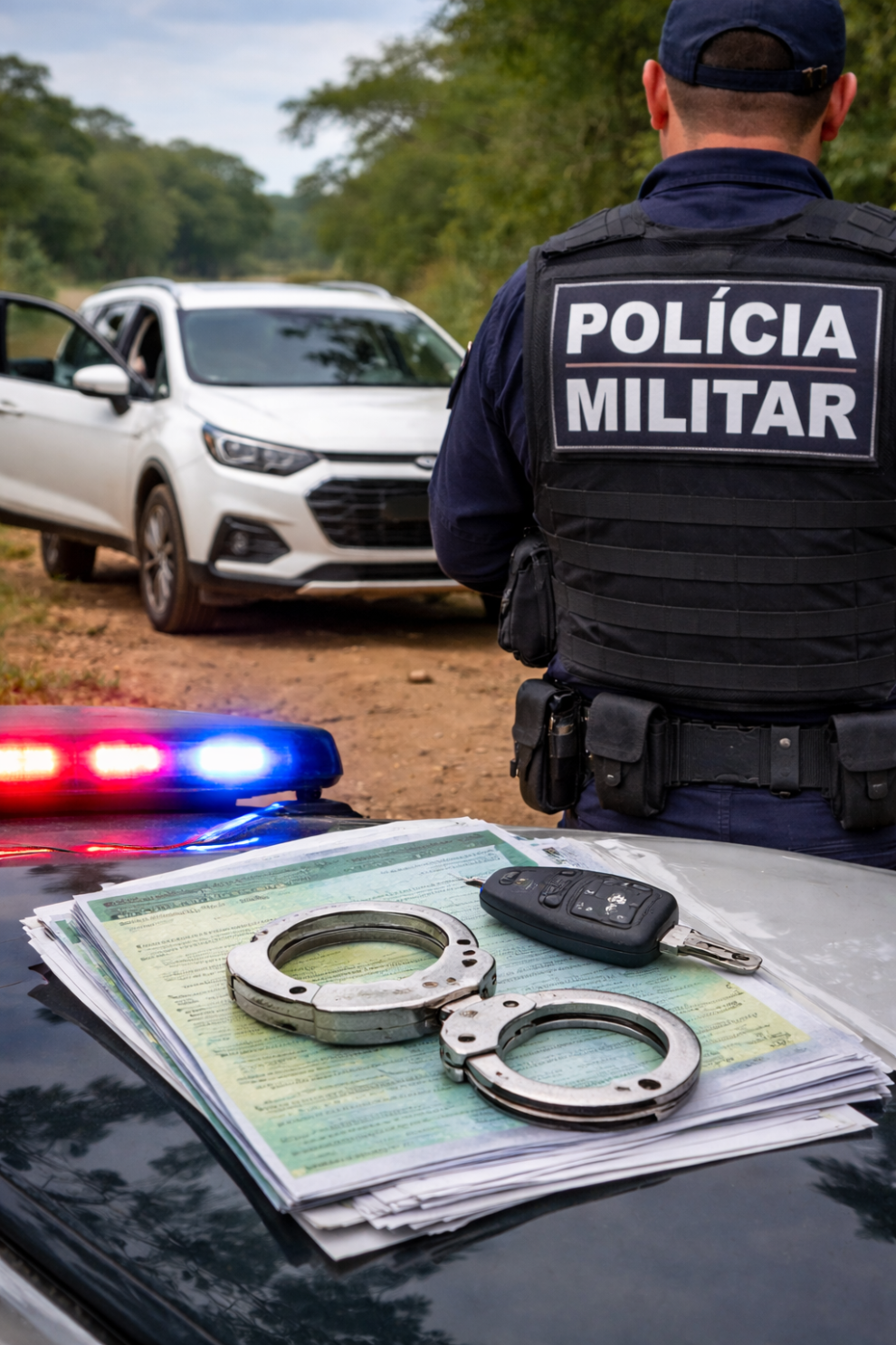 De acordo com a guarnição, o condutor apresentou nervosismo durante a abordagem, o que motivou uma checagem detalhada no sistema. Foi constatado que as placas eram clonadas e que o chassi correspondia a um veículo roubado no estado de São Paulo no final do ano passado.